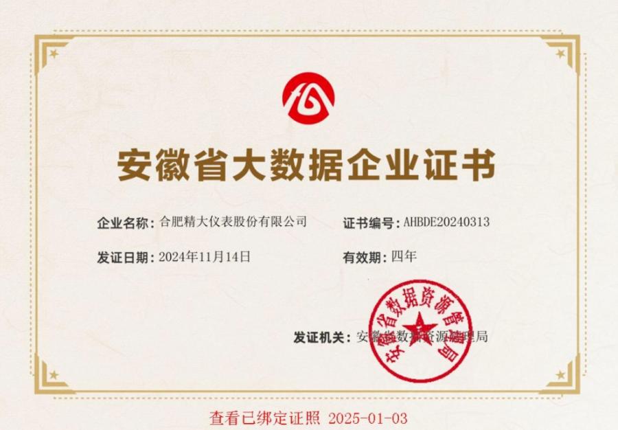 在這個(gè)信息爆炸的時(shí)代,每一次技術(shù)的革新都如同破曉的曙光,照亮前行的道路。今天,我們自豪地宣布:繼2024年榮獲合肥市大數(shù)據(jù)企業(yè)認(rèn)定之后,合肥精大儀表股份有限公司再次憑借其在智能制造領(lǐng)域的卓越表現(xiàn),成功斬獲安徽省大數(shù)據(jù)企業(yè)認(rèn)定,連續(xù)兩年在科技創(chuàng)新的道路上留下堅(jiān)實(shí)足跡!